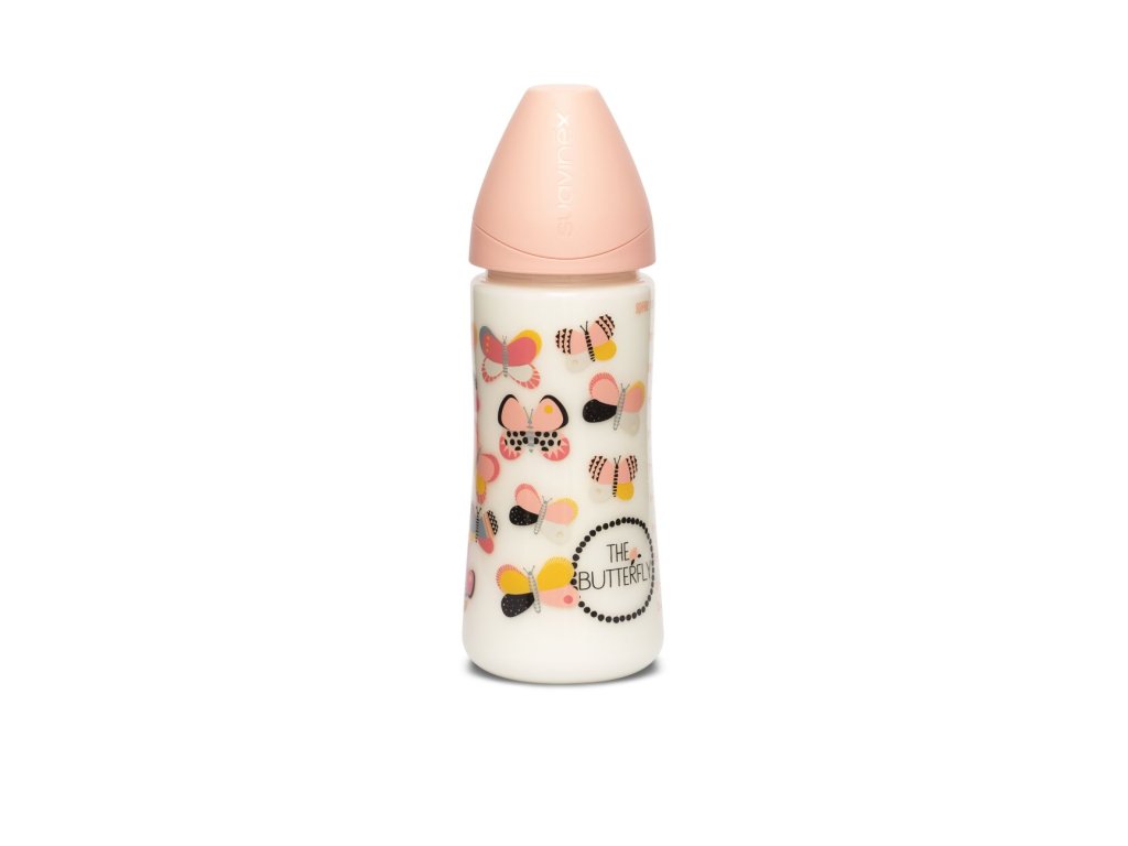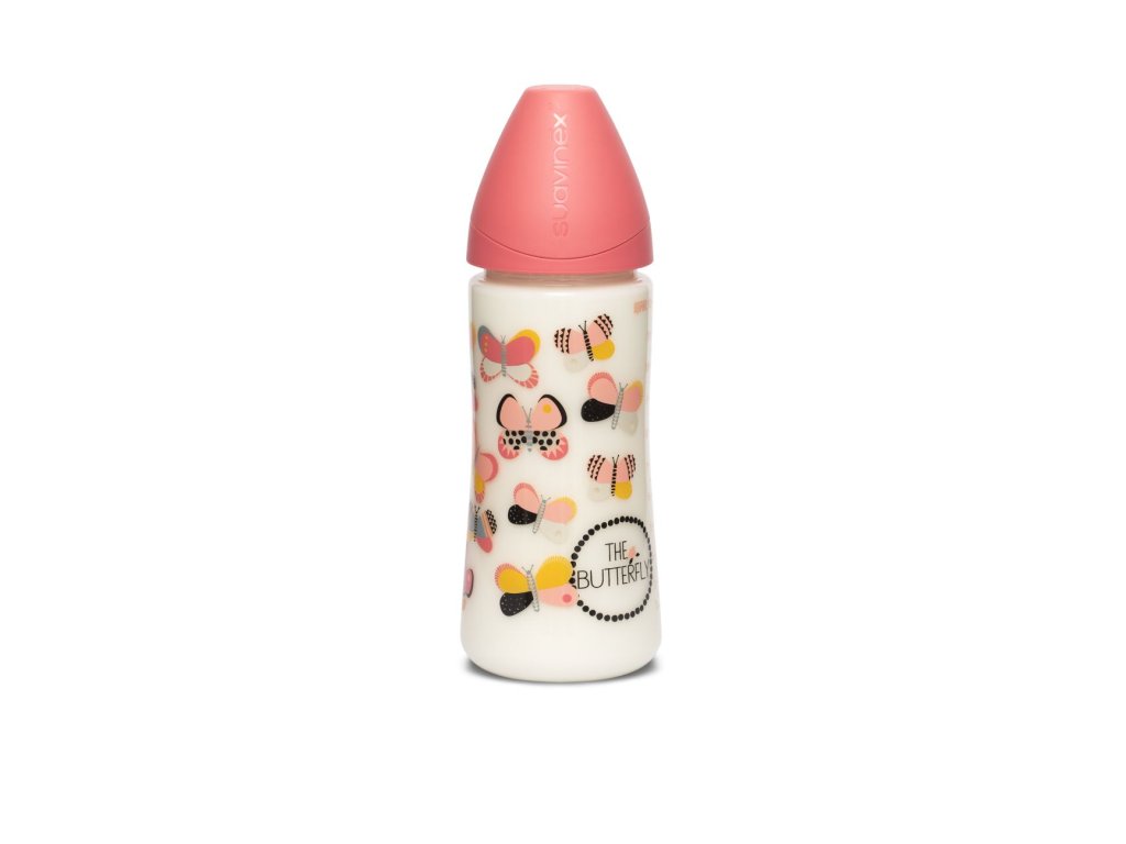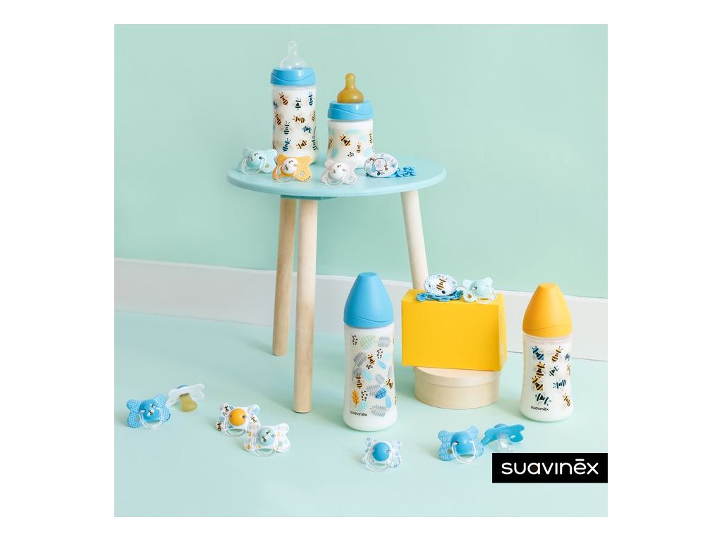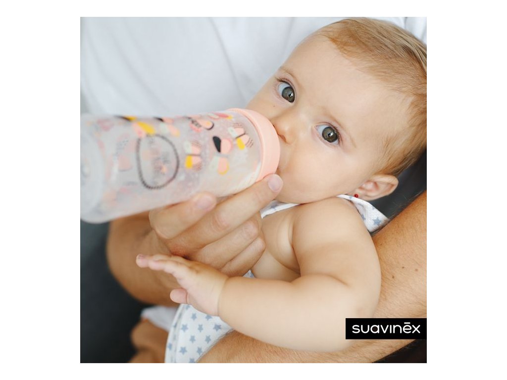 Širokohrdlá fľaša umožňuje rodičom jednoduchšie umývanie a prípravu pokrmu a vďaka svojmu širokému dnu je lepšie stabilná. Jej ergonomický tvar podporuje lepšie uchopenie počas kŕmenia bábätka. Má guľatý silikónový náhradný cumlík s veľkosťou prietoku L – náhradný cumlík uľahčuje sania hustejších pokrmov, napríklad kašou alebo mlieka s cereáliami. Fľaša disponuje antikolikovými prieduchy, ktoré zamedzujú hromadeniu vzduchu a jeho prehĺtaniu počas kŕmenia, čím sa znižuje pravdepodobnosť vzniku novorodeneckej koliky. Náhradný cumlík je schválený španielskou asociáciou pediatrov a dentistov. Fľaše je radosťou kombinovať spolu s oválnymi klipy a cumlíky radu Fusion dizajnovej značky Suavinex. Objem: 360 ml. Tvar náhradného cumlíka: guľatý. Veľkosť prietoku cumlíky: L (rýchly prietok). Materiál náhradného cumlíka: silikón. Odporúčaný vek: +4 mesiace. Vyrobené v rámci EÚ. Všetky výrobky sú bez BPA, klinicky testované a vyrobené španielskym farmaceutickým výrobcom.Dodatočné parametre
