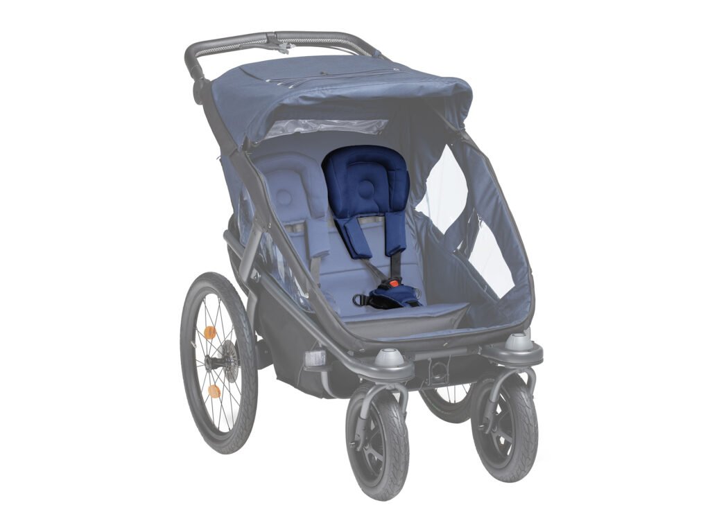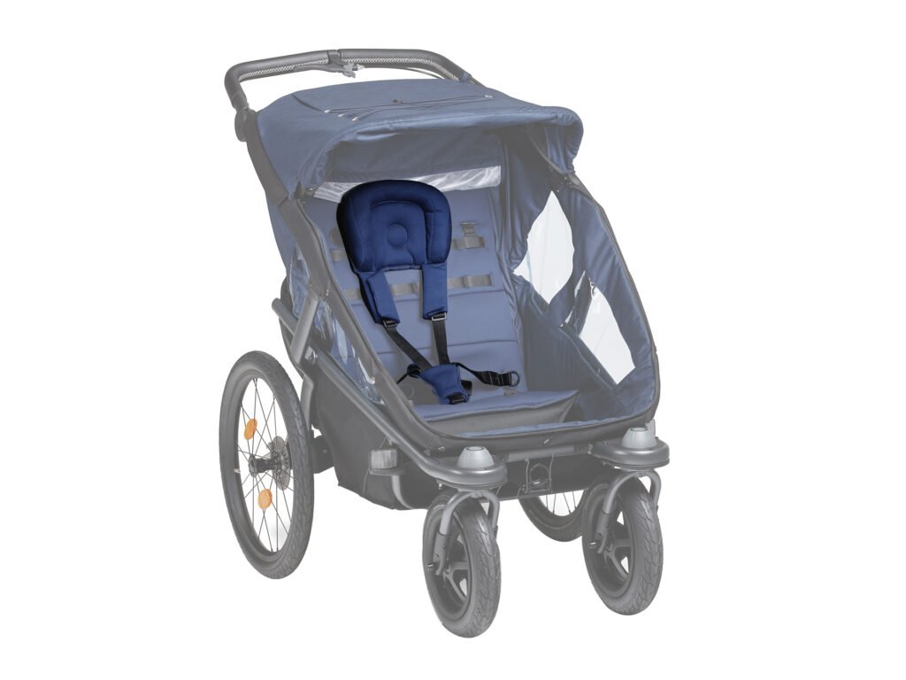 Náhradný bezpečnostný pás a opierka hlavy na použitie v kočíku - cyklovozíku tfk velo pre 2 deti.