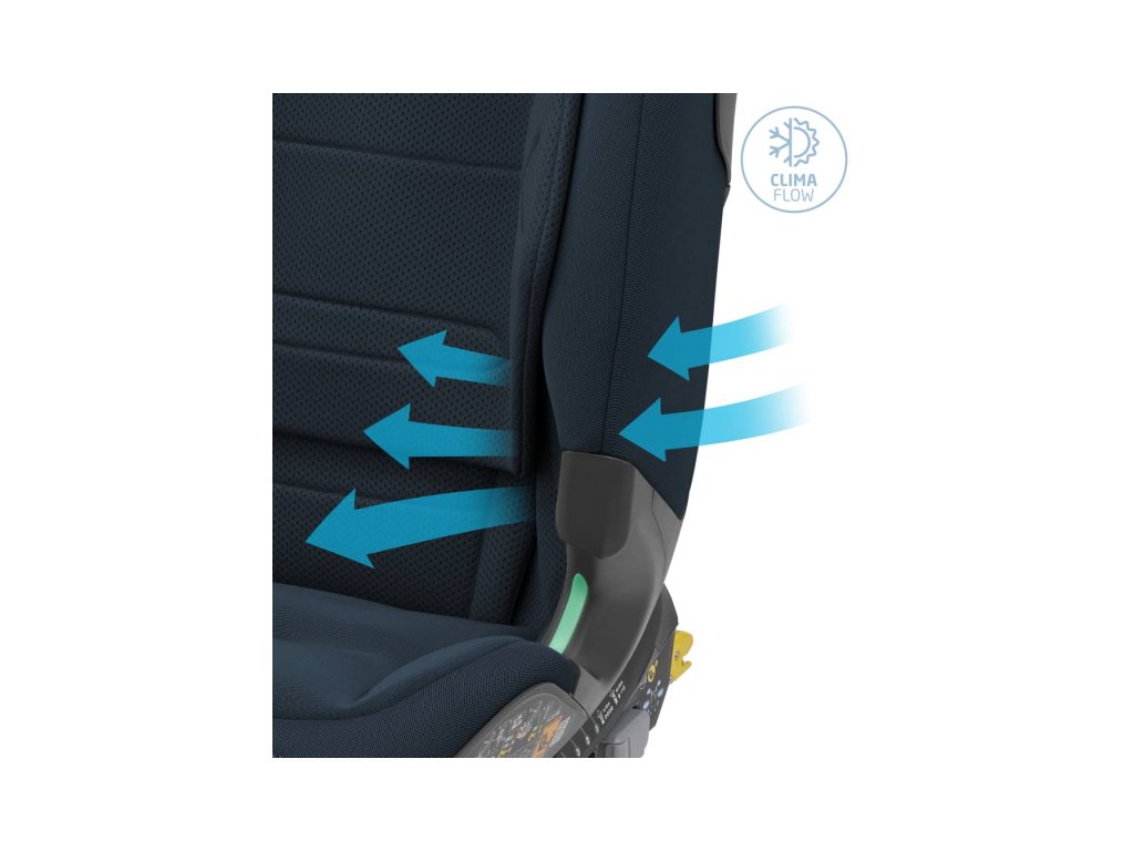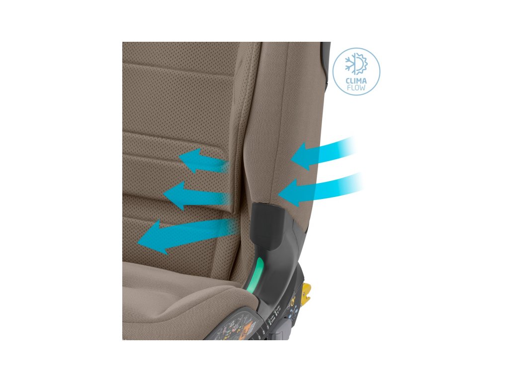 funkcia ClimaFlow pre optimálnu tepelnú pohodu dieťaťa - špeciálny vzor a pena operadla spolu s priedušnou tkaninou prispievajú k dobrej cirkulácii vzduchu po celú dobu jazdy