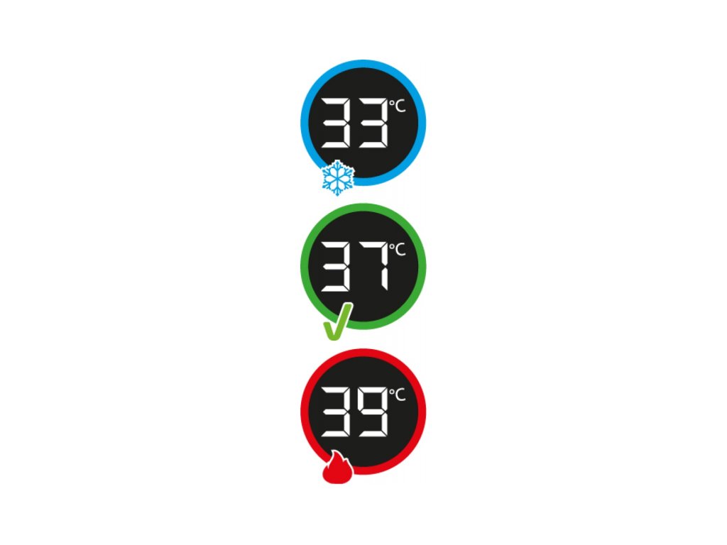 integrovaný teplomer HighSense + farebný indikátor bezpečnej teploty