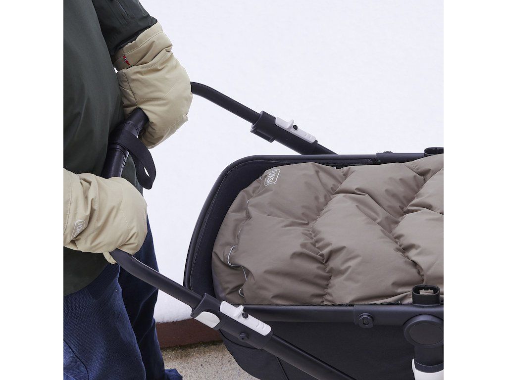 Rukavice sú navrhnuté tak, aby sa zmestili na všetky ruky aj typy kočíkov. Pripevnite palčiaky ku kočíku tak, že na špičke rukavice otvoríte suchý zips a umiestnite ho okolo rukoväte. Jednoduchú šnúrku na strane možno zatiahnuť rukavice, aby obopli zápästie a nedostala sa do nich zima. Kombinujte a zlaďte farby rukavíc s fusakmi a detskými topánočkami Voksi.