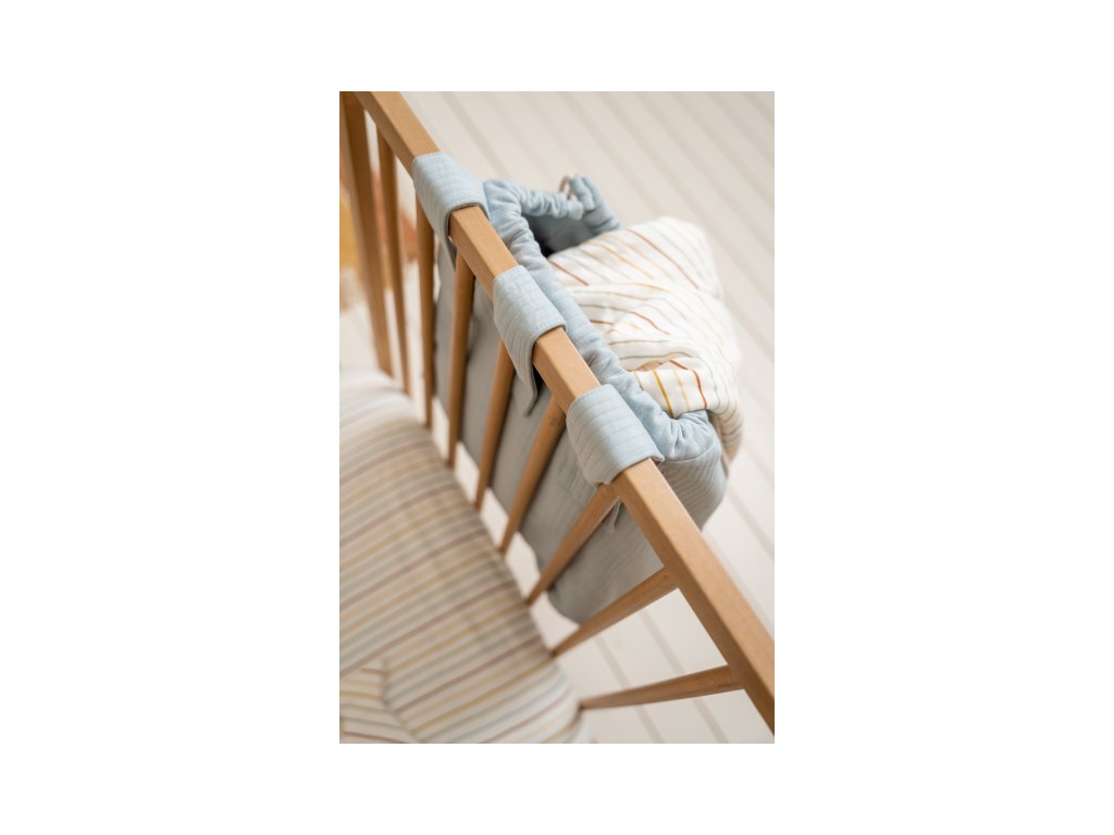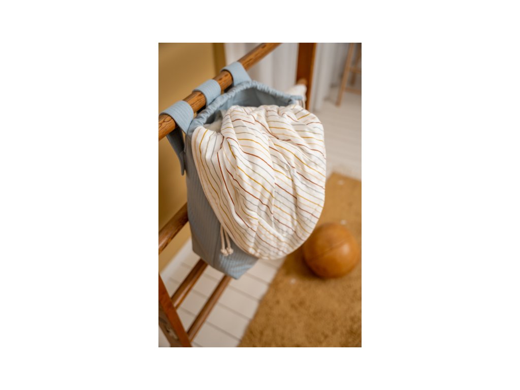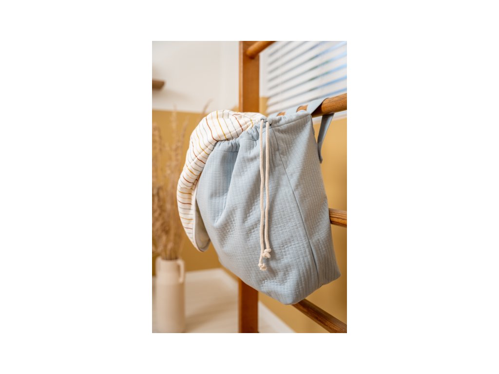 Praktická závesná taška na hraciu ohrádku či postieľku je vhodná na jednoduché a rýchle ukladanie hračiek. Taška je súčasťou dizajnovej kolekcie textilu Little Dutch Newborn Naturals Pure Soft Blue.
